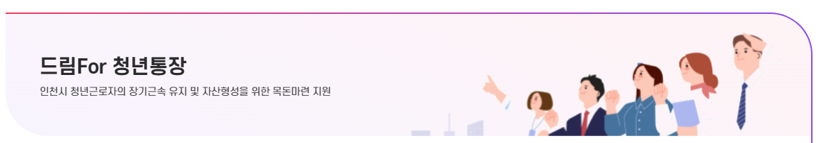 드림 For청년통장은 인천광역시에서 시행하는 청년 자산형성 지원사업으로, 청년들이 목돈을 마련해 자립할 수 있도록 지원하는 제도입니다. 참여자가 15만 원씩 3년간 저축하면, 인천시가 동일한 금액을 매칭 지원하여 만기 시 본인이 저축한 540만 원에 인천시 지원금 540만 원까지 합쳐 최대 1,080만 원을 수령할 수 있습니다.