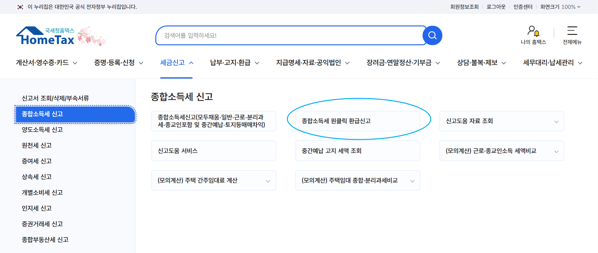 2. 종합소득세 신고: '세금신고' 메뉴에서 '종합소득세 신고'를 선택합니다.